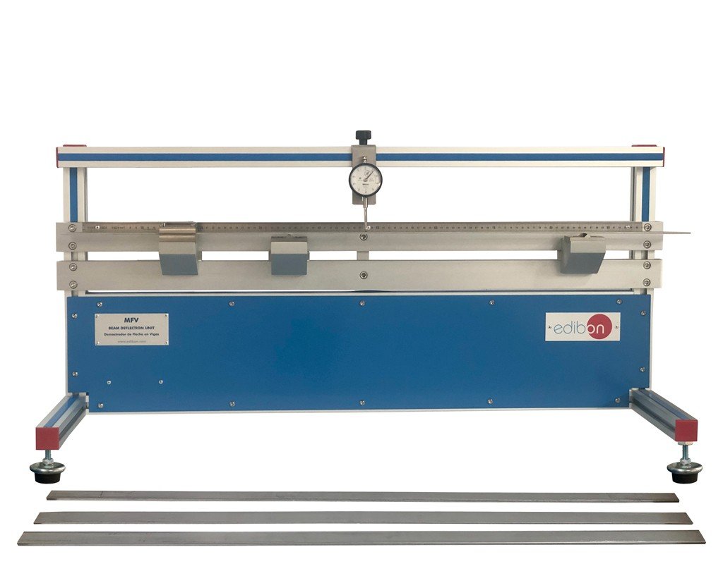 Demostrador de Flecha en Vigas «MFV»: Observa y Mide la Deformación Bajo Cargas Reales. Verifica los principios de la flexión a través del estudio experimental de deformaciones en barras metálicas, herramienta clave para ingeniería estructural y mecánica.