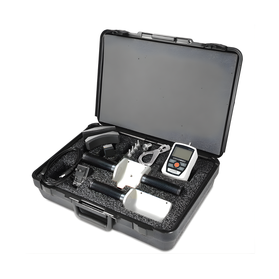 La ventaja competitiva de este dinamómetro portátil reside en su versatilidad. Al integrar cunas de doble y simple asa con agarres de goma antideslizantes, el evaluador puede aplicar fuerza de manera controlada y segura, simulando tareas reales de empuje o arrastre. Además, la inclusión de fijaciones acolchadas (planas, curvas y cuadradas) permite adaptar el instrumento a diferentes partes del cuerpo o superficies de herramientas, lo que lo convierte en un equipo polivalente para la evaluación de la fuerza muscular y la resistencia de materiales de empaque o productos de consumo.