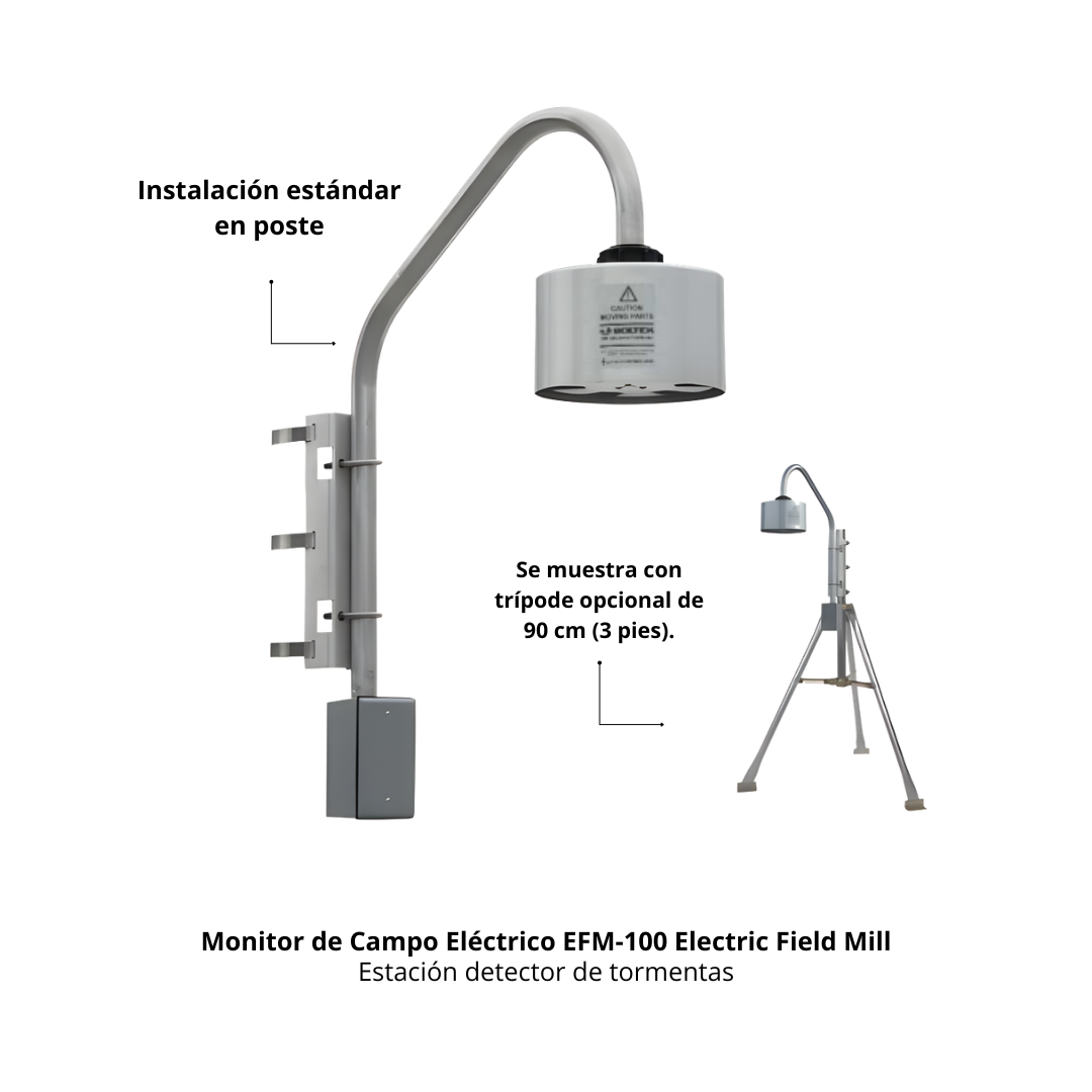 Diseñada para operar en condiciones ambientales exigentes, la estación cuenta con una construcción robusta en aluminio. Es ideal para instalaciones industriales, minería y operaciones al aire libre donde el monitoreo continuo de la actividad eléctrica atmosférica es crítico para la seguridad operativa y la protección de activos.