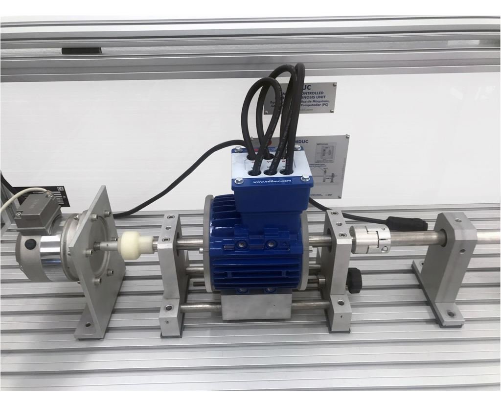 El Set de Vibraciones Electromecánicas, «MDU-SEV», es un equipo regulable que permite ajustar un entrehierro asimétrico o desconectar un devanado generando una asimetría electromagnética y de esta manera es posible estudiar su comportamiento vibracional.