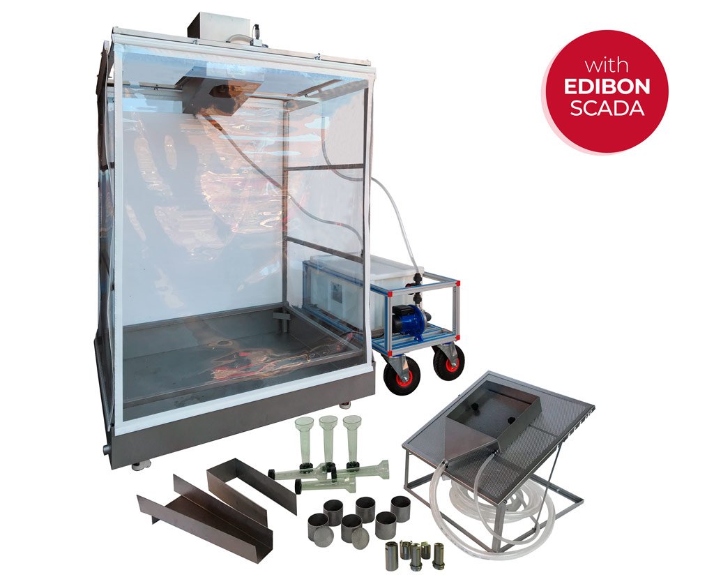 El Simulador de Lluvia para Estudios de Erosión de Suelos, Controlado desde Computador (PC), «RSESC», diseñado por EDIBON, permite investigar y estudiar la relación entre la lluvia y la erosión en diferentes tipos de suelos, estimar la perdida de suelo e infiltraciones en tormentas de diferentes intensidades e identificar los métodos mediante los cuales se puede prevenir la erosión.