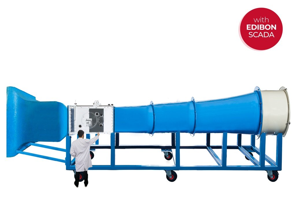El Túnel Aerodinámico, 1000 x 1000 mm, Controlado desde Computador (PC), «TA1000/1000C», es un túnel de viento diseñado para estudiar la aerodinámica subsónica en un túnel en circuito abierto y con flujo subsónico incompresible.